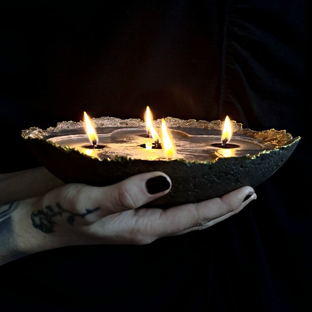 Artisan candles made slowly by hand from the robust mediums of cement, volcanic rock & black sand. then hand poured individually with a blend of the finest quality coconut soy wax finding beauty in it's organic natural form, with a clean even burn & high scent throw, scented botanical oils are phthalate free & wicks are raw cotton, all ingredients are non GMO, vegan & cruelty free.