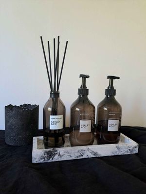 Romi tray is a long straight edge tray, sculptural & functional crafted individually from my curated aggregate mix then sealed for enduring quality giving each piece it's own unique marbled texture & charm.