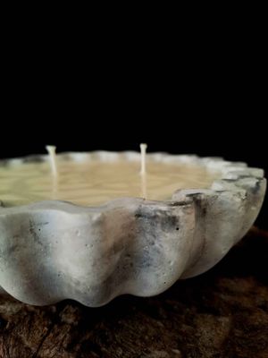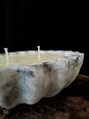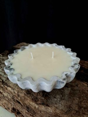 Kyra fluted candle bowl is sculptural & functional, crafted individually from my curated aggregate mix then sealed for enduring quality giving each piece it's own unique texture & charm.