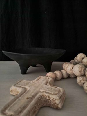 Stylish black tripod bowl, versatile & sculptural handcrafted artisan ceramic. An art piece or a collection holder eg: soaps, jewellery, candles, flowers