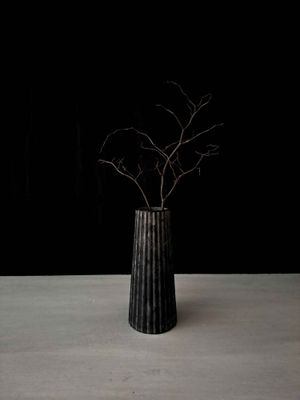 Greige vase is sculptural & functional, crafted individually from my aggregate mix, then sealed for enduring quality in this moody black tone.