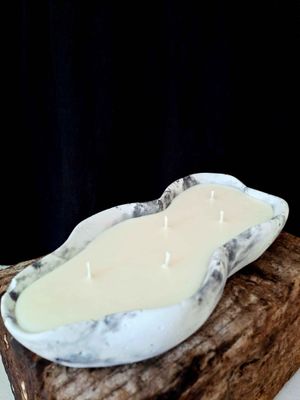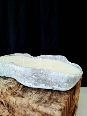 Hera wave candle bowl is sculptural & functional, crafted individually from my curated aggregate mix then sealed for enduring quality giving each piece it's own unique texture & charm.
