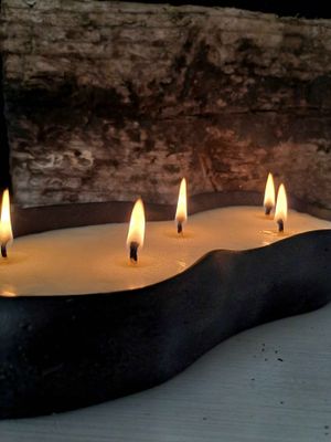 Sculptural & dramatic is the dark moody obsidian candle, crafted individually from my curated blend of cement, black pigment sand & crushed volcanic rock.