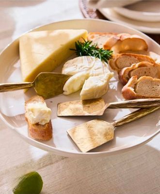 Crafted with a hand-forged finish and clean, chunky lines, this beautiful cheese set brings an organic elegance to your platter. Each piece is full of artisanal texture offering a balance of practicality and understated style.