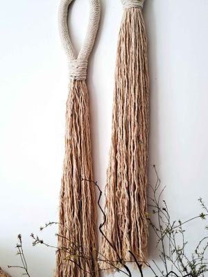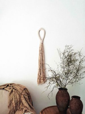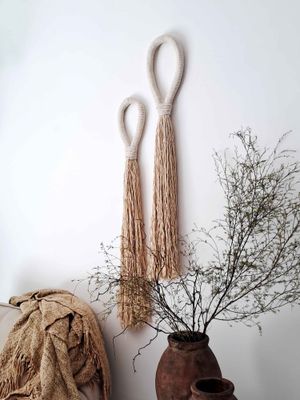 Navajo wall tassel is layers of soft creamy white natural cotton wrapped & shredded, the beautiful raw textures fall organically & creates a natural soft sculpture. Hanging natural artworks around the home creates a calm & grounding ambience to your space.