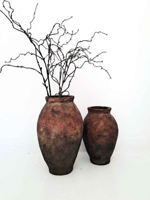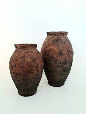 A set of two stylish terracotta urns for your table top in a vintage inspired distressed earthy tone. These two look great side by side or alternatively style them separately with flowers or foliage.