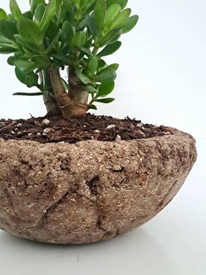 PLANTER: Faux limestone planter crafted slowly by hand from my earth blend then left to weather before a lime wash is applied.