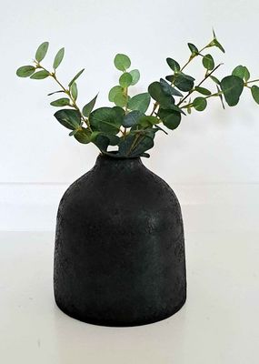 A stylish black terracotta vase, perfect for display as is or fill with faux or fresh blooms for a shelf or table top. Great size for a bathroom vanity, or side table.